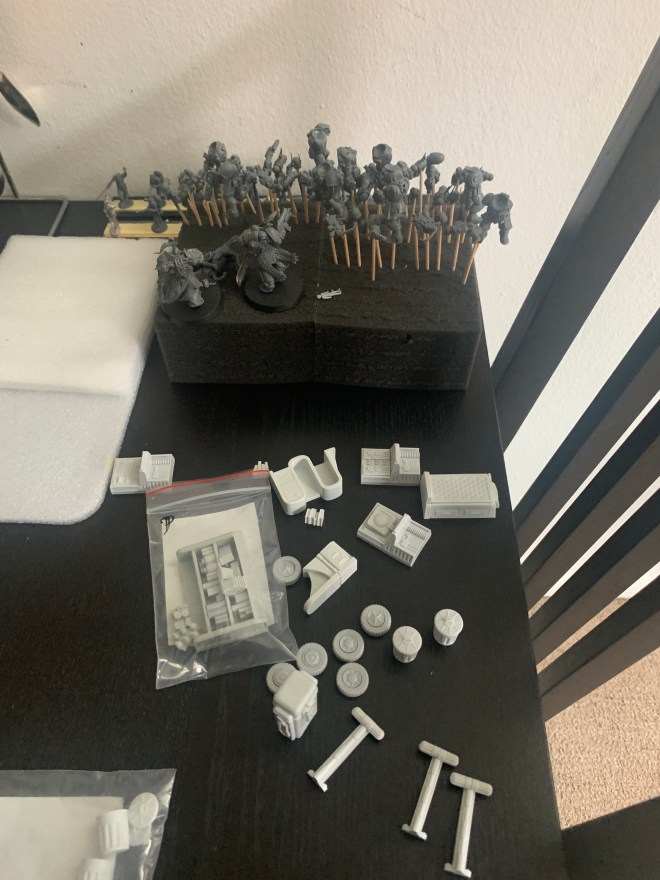 As a hobby painter, I always tell my friends that I prefer to prime and base coat a lot of models at once in order to avoid having to use the airbrush and compressor constantly. It’s a hassle to set up and take apart, especially in a small NY apartment, so airbrush sessions tend to last 2-3 days.