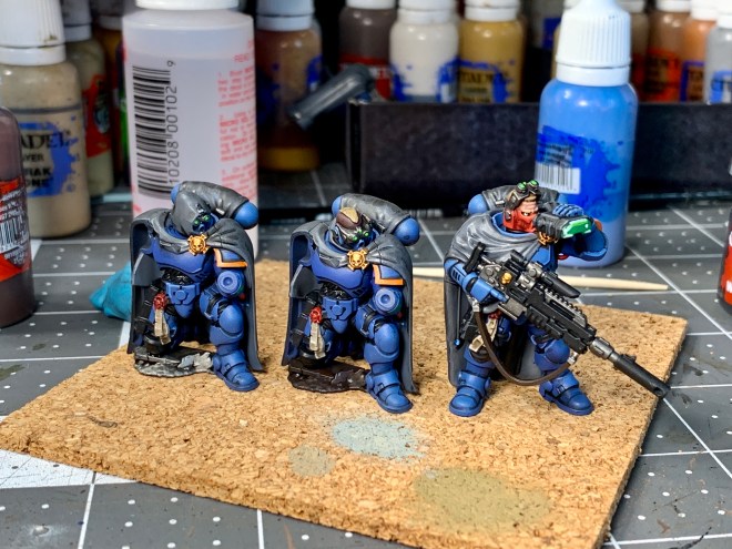 I was lucky this week to complete painting a squad of Primaris Eliminators from the Start Collecting Vanguard Space Marine box set!